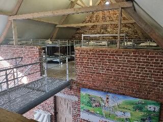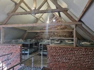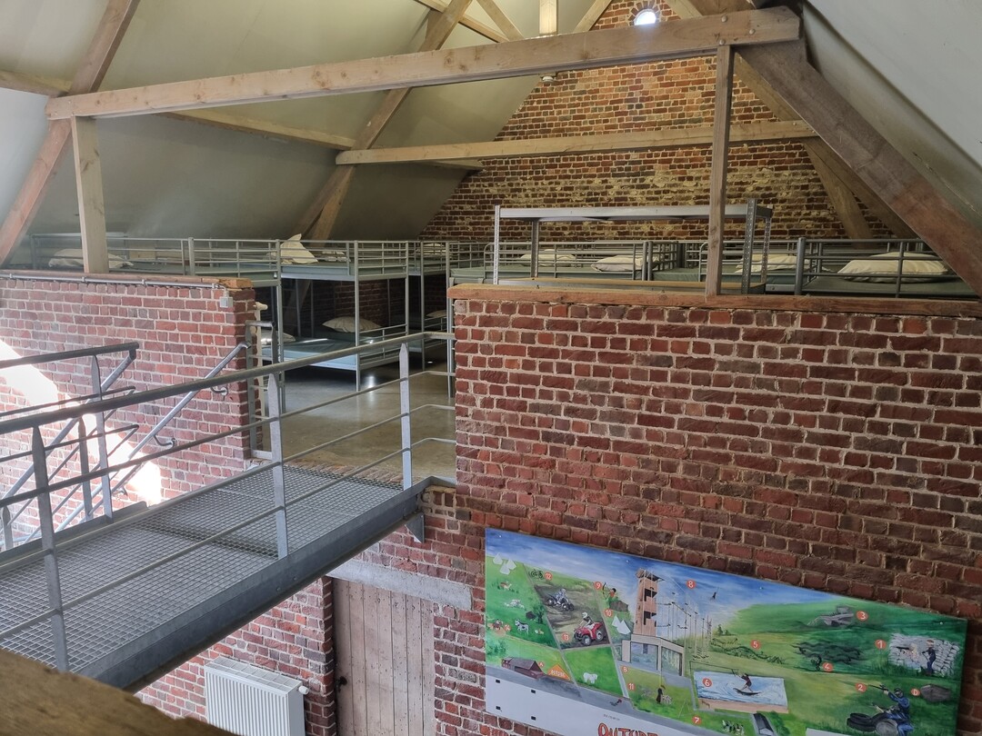 De slaapzaal bevindt zich op het eerste verdiep en bevat 16 stapelbedden (plaats voor 32 personen). De gescheiden sanitaire blokken met voldoende toiletten, douches en lavavbo's zorgen voor de nodige privacy & comfort.